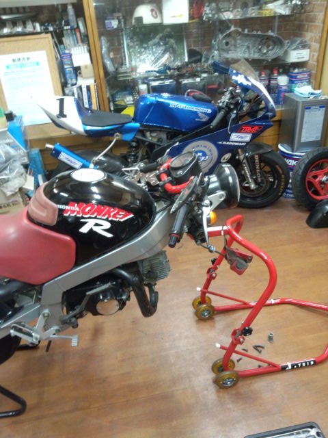 今日はモンキーRの整備をしています。